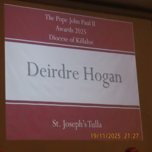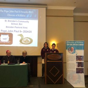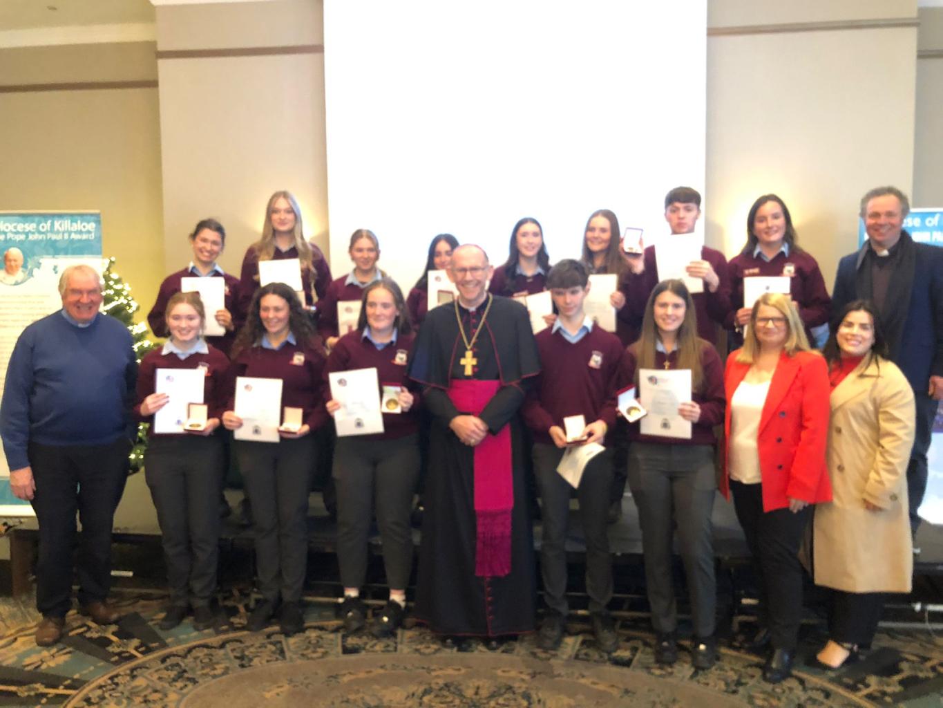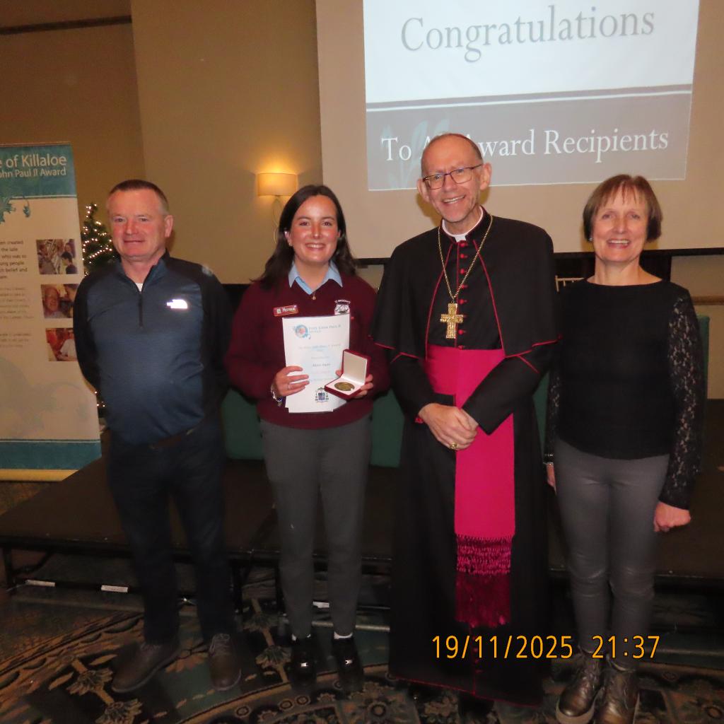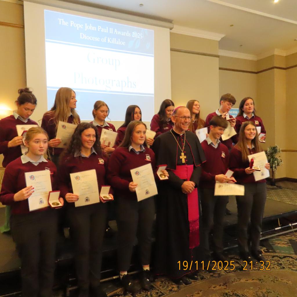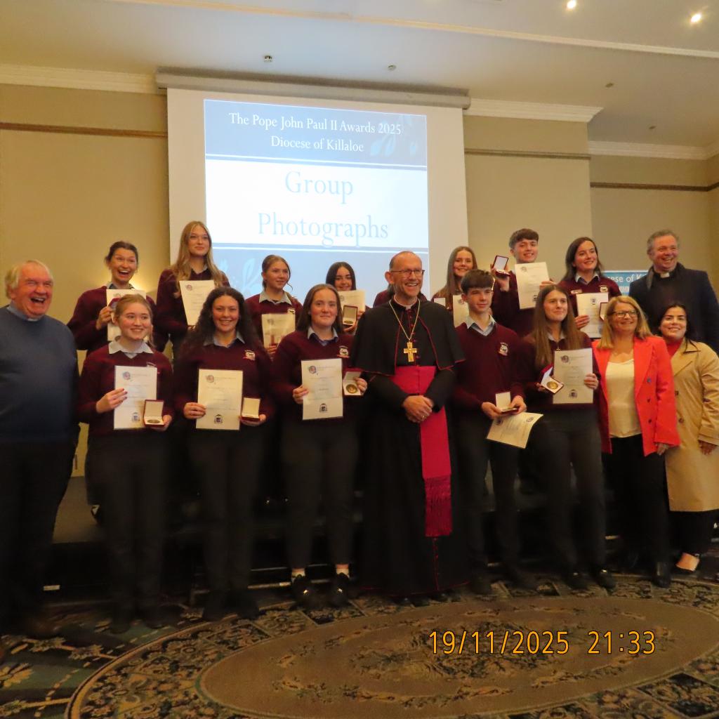 Congratulations to the young people of St. Brendan’s C.S who participated in the JPII awards scheme last year. They received there medals & certificates from Bishop Fintan at a function in the Woodstock Hotel Ennis, Wednesday November 19th