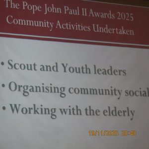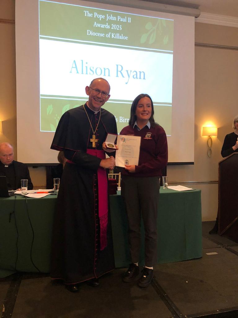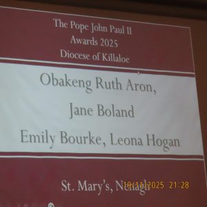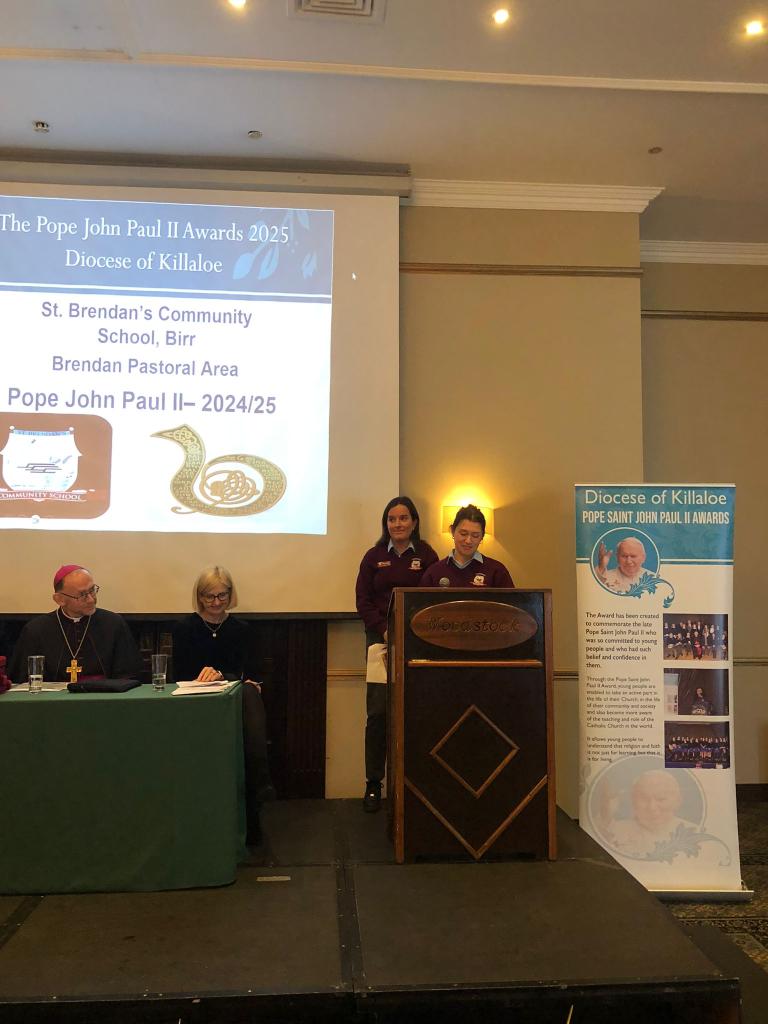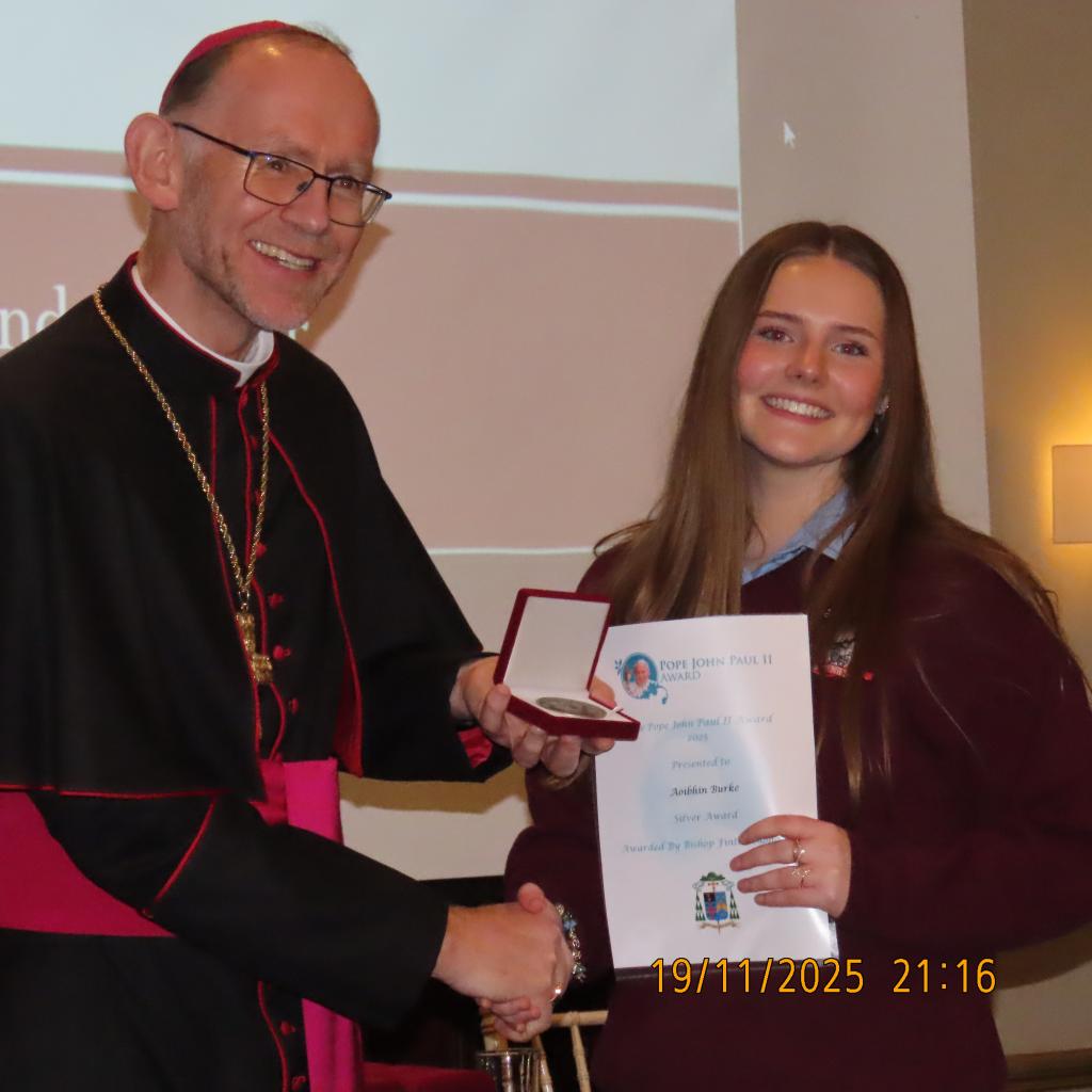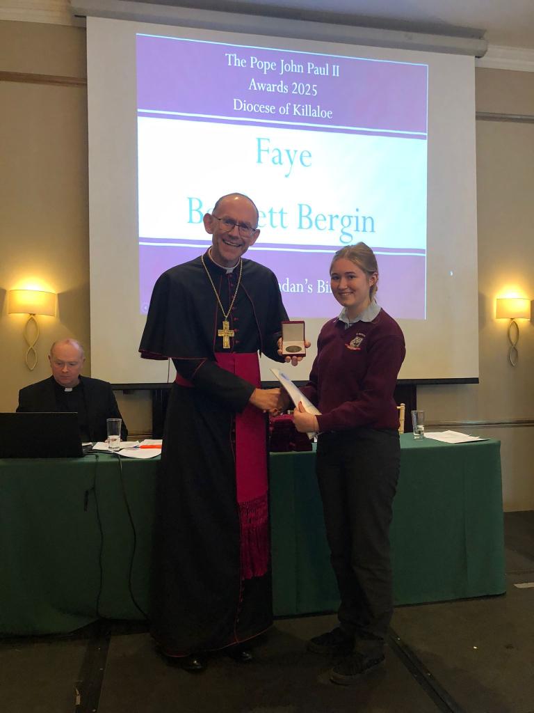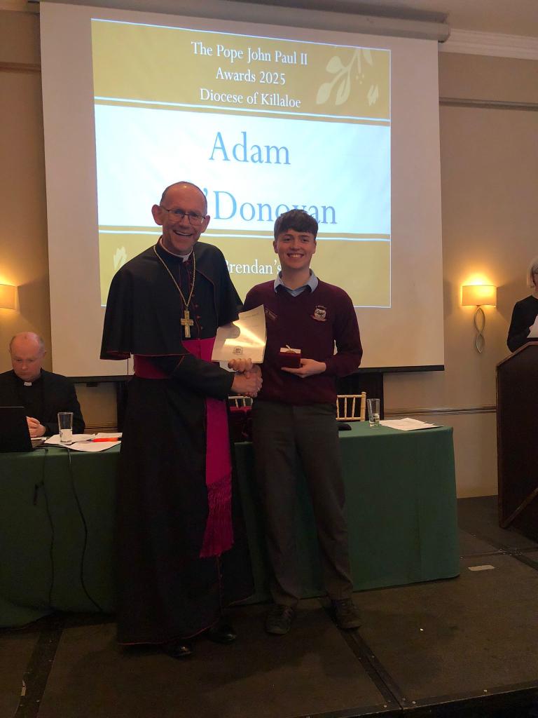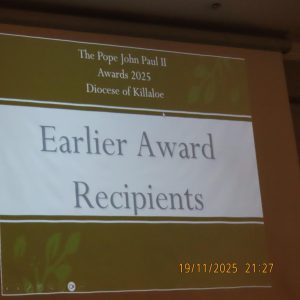 Congratulations to the young people of St. Brendan’s C.S who participated in the JPII awards scheme last year. They received there medals & certificates from Bishop Fintan at a function in the Woodstock Hotel Ennis, Wednesday November 19th